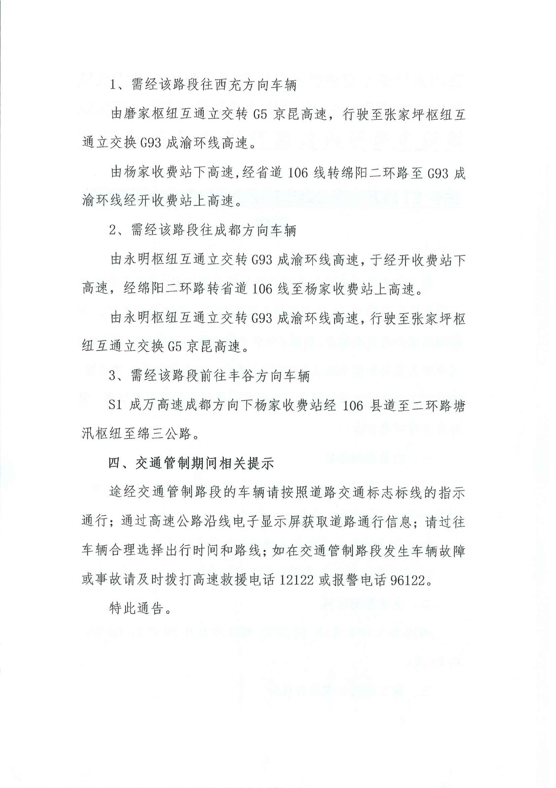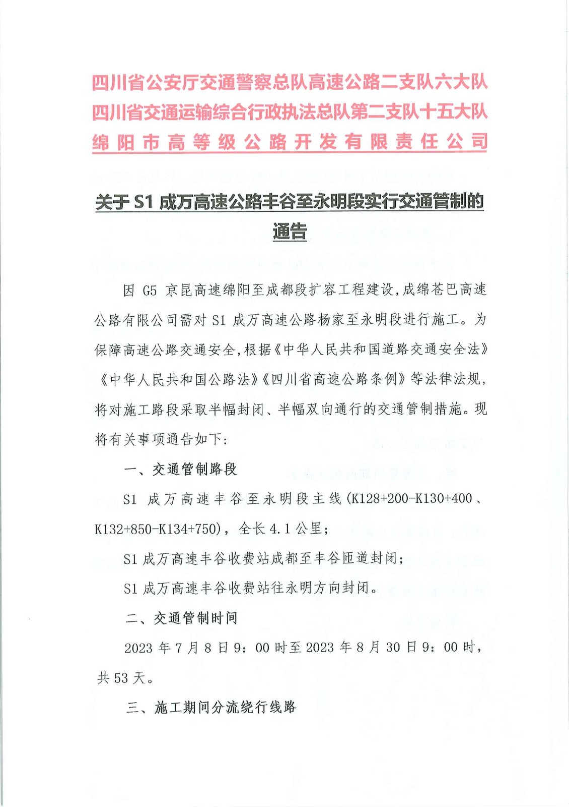 關(guān)于S1成萬高速公路豐谷至永明段實(shí)行交通管制的通告