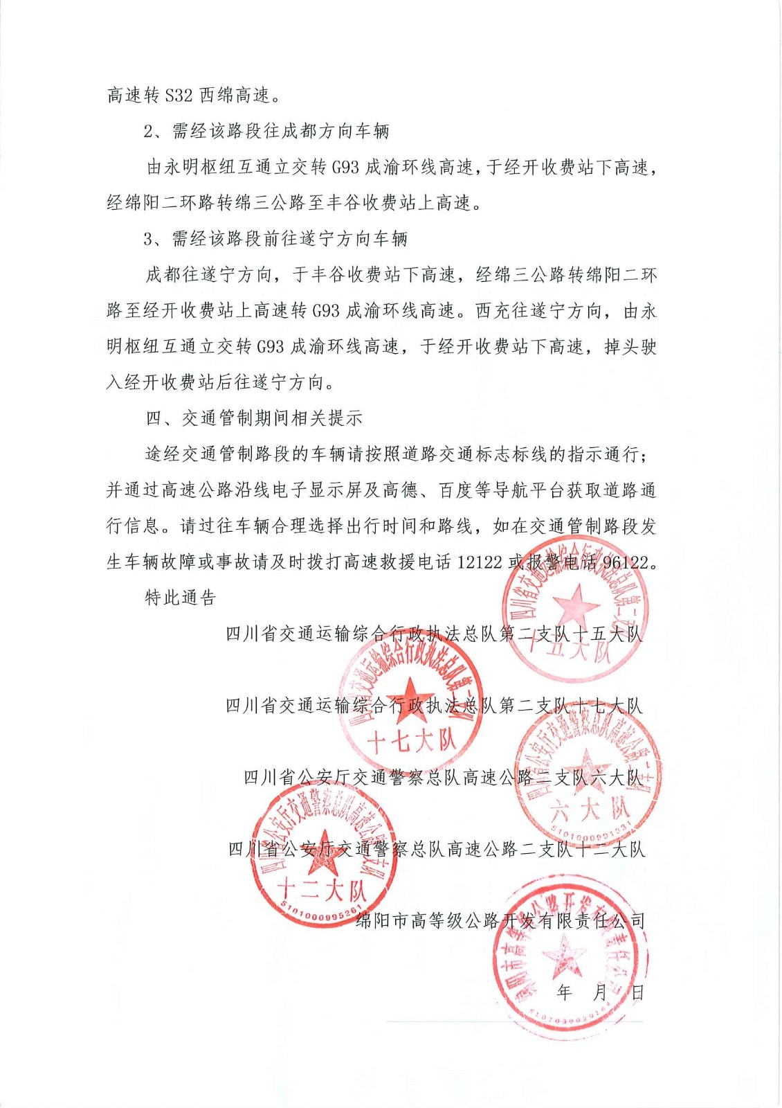 關(guān)于S1成萬高速公路豐谷收費站至永明樞紐段實行交通管制通告